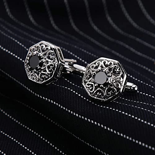 ANAZOZ Manchetknopen 1 paar voor heren roestvrij staal 1,6 x 1,6 cm hol hart polygon zwart zilver manchetten voor overhemd bruiloft geweldig